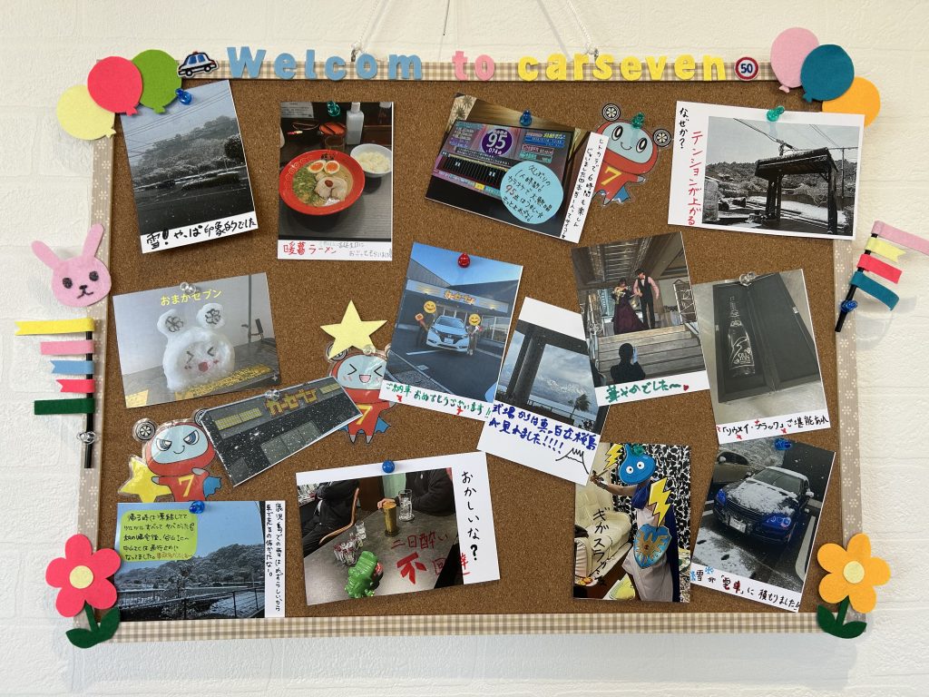 こんにちは!!カーセブン鹿児島谷山店です(^^ 今日は先月から始めた店舗の入り口に設置してあるフォトボードの写真をスタッフそれぞれ貼...