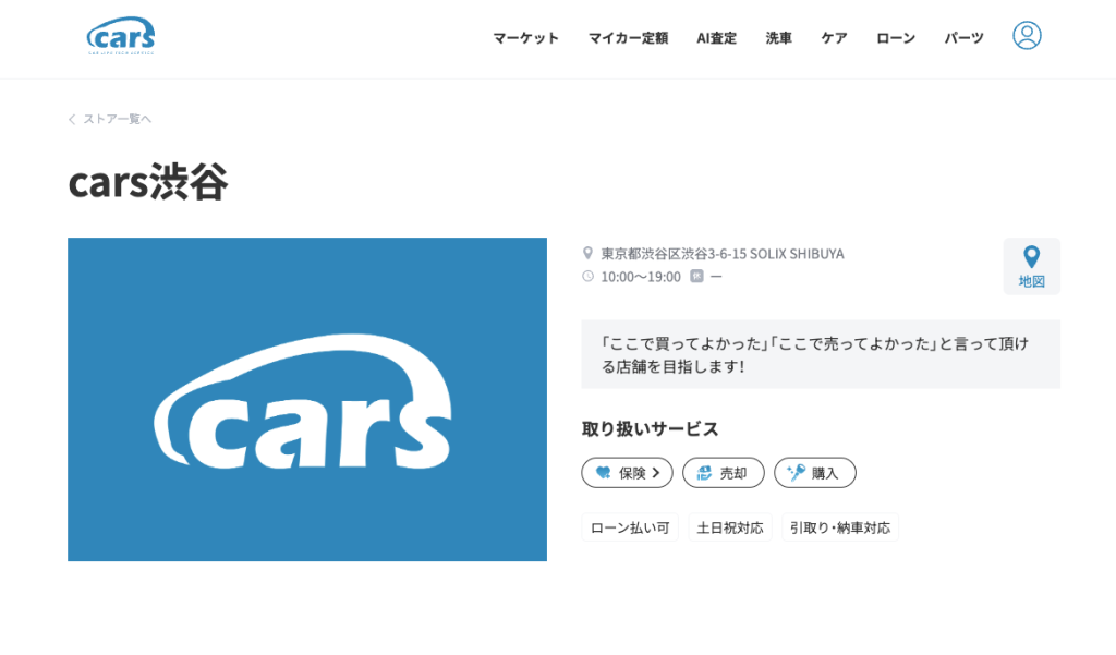 | cars渋谷 | 自社拠点でのフルサポート体制と、高度なコンピューター診断が強み。 |