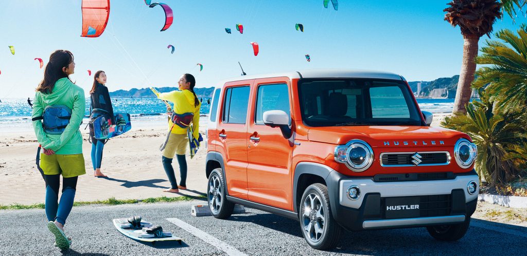 スズキのハスラーは、クロスオーバーSUV型の軽自動車で、アウトドアにも対応できる、パワフルな走行が持ち味です。2022年に、マイナーチェンジにより、安全装備と室内空間がパワーアップしました。
