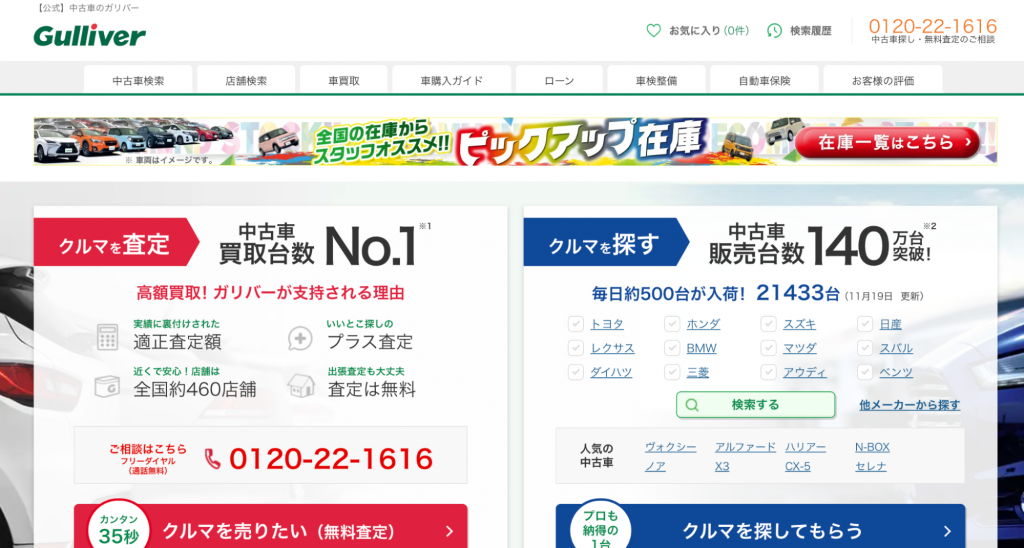 ガリバーは、国内最大級の買取実績と強力な流通ネットワークを持つ大手買取業者です。全国に広がる販売網と独自のシステムによって、どんな車種・状態の車でも積極的に買取を実施しています。