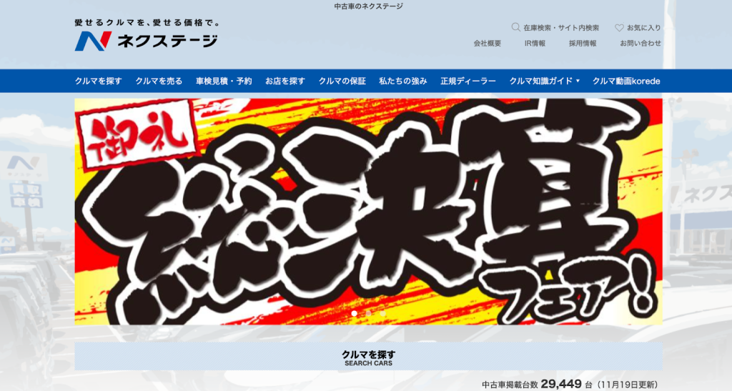 ネクステージは、買取だけでなく中古車販売店としても力を入れている業者です。SUVや輸入車、スポーツカーなど車種別専門店も多数展開しており、特に販売に強い車種は高価買取が期待できるでしょう。