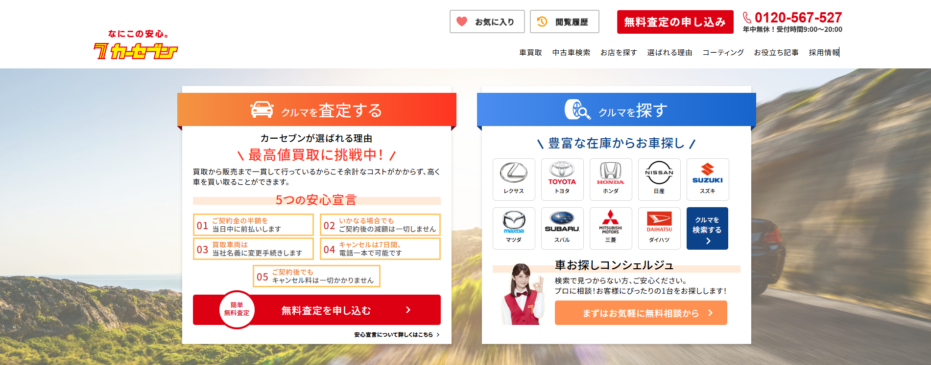カーセブンは、買取価格だけでなく、安心感を重視したい方におすすめの車買取業者です。