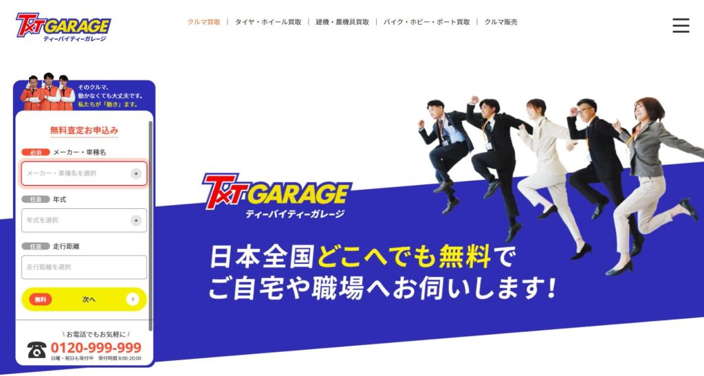 | ティーバイティーガレージ | ・古い車や状態が悪い車も積極的に買取している・出張査定や訪問査定が無料・全国47都道府県に広がるネットワークを活かした対応力 |
