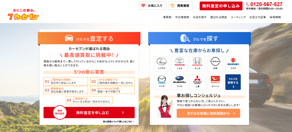 8年落ちのハスラーを売却したい場合、カーセブンの利用がおすすめです。カーセブンは信頼できる自動車買取サービスを展開しており、「5つの約束」を掲げることで知られています。