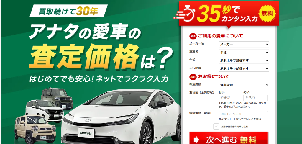ガリバーは全国に約460店舗の大手買取チェーンです。「お客さまに損をさせない中古車業界にする」をモットーに取り組んでいます。創業30年の長い経験と確かなノウハウで、適正な査定価格を提示しています。