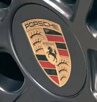 ポルシェの本社があるシュツットガルト市の紋章「跳ね馬」と、ビュルテンベルグ州の紋章「盾」の形がモチーフになっています。