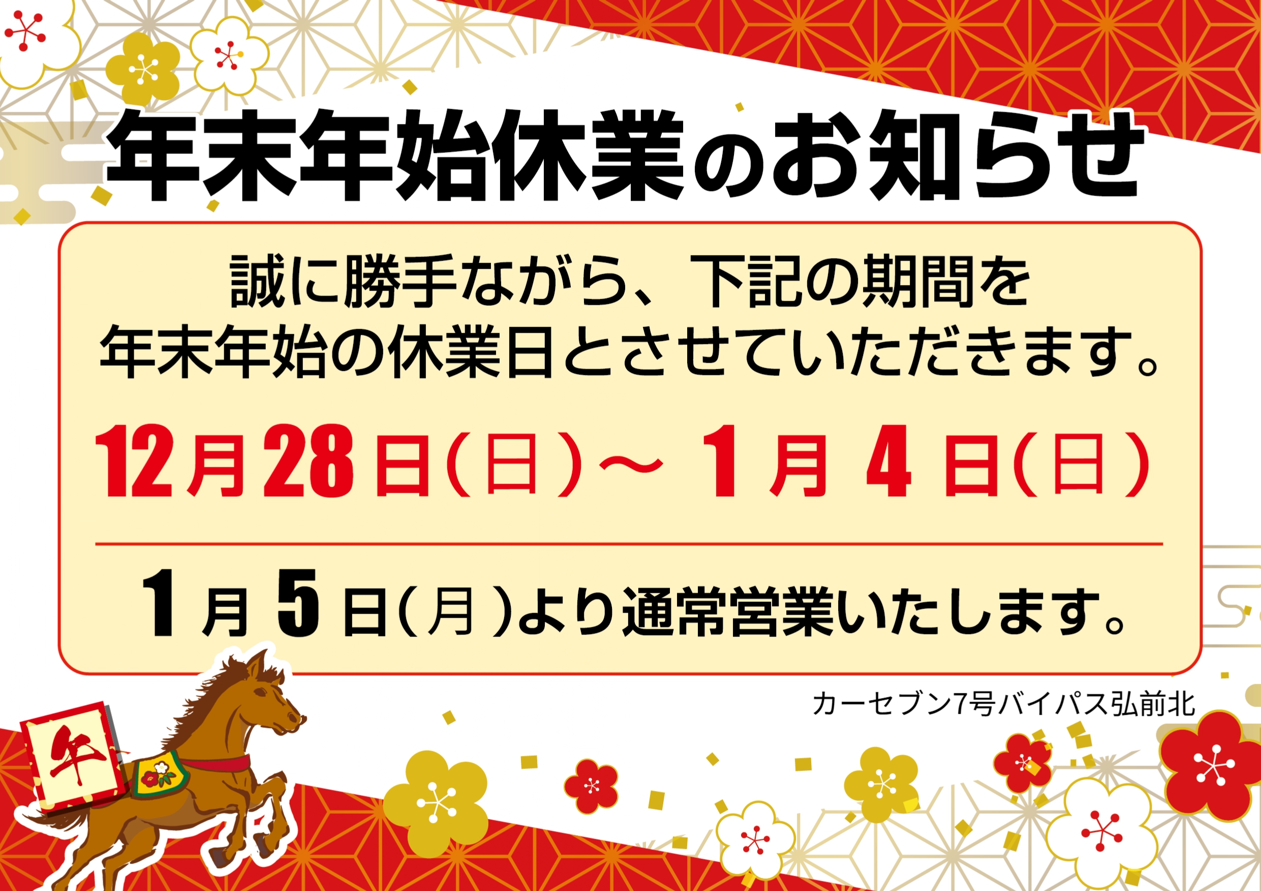 2025.12.26年末年始休業のお知らせ🎍