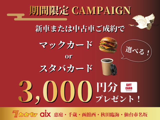 皆様に特大チャンス到来!! 1/17日~31日までの期間限定でマックカードorスタバカード3,000円分をプレゼントしちゃいます☆ ...