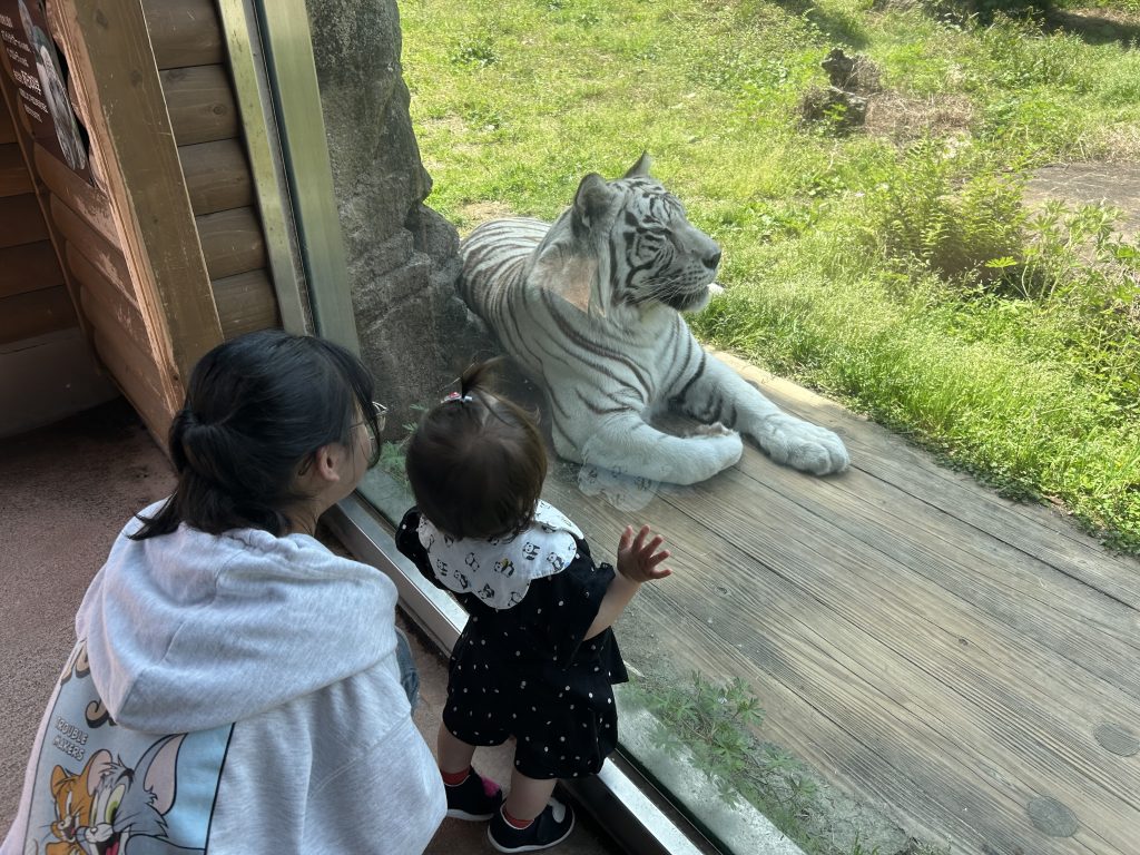 トラさんにめちゃめちゃ興味津々なお孫ちゃん👶💖ガラスがあるとはいえこんな至近距離で見ているとちょっと怖い気もします😵💫😵💫